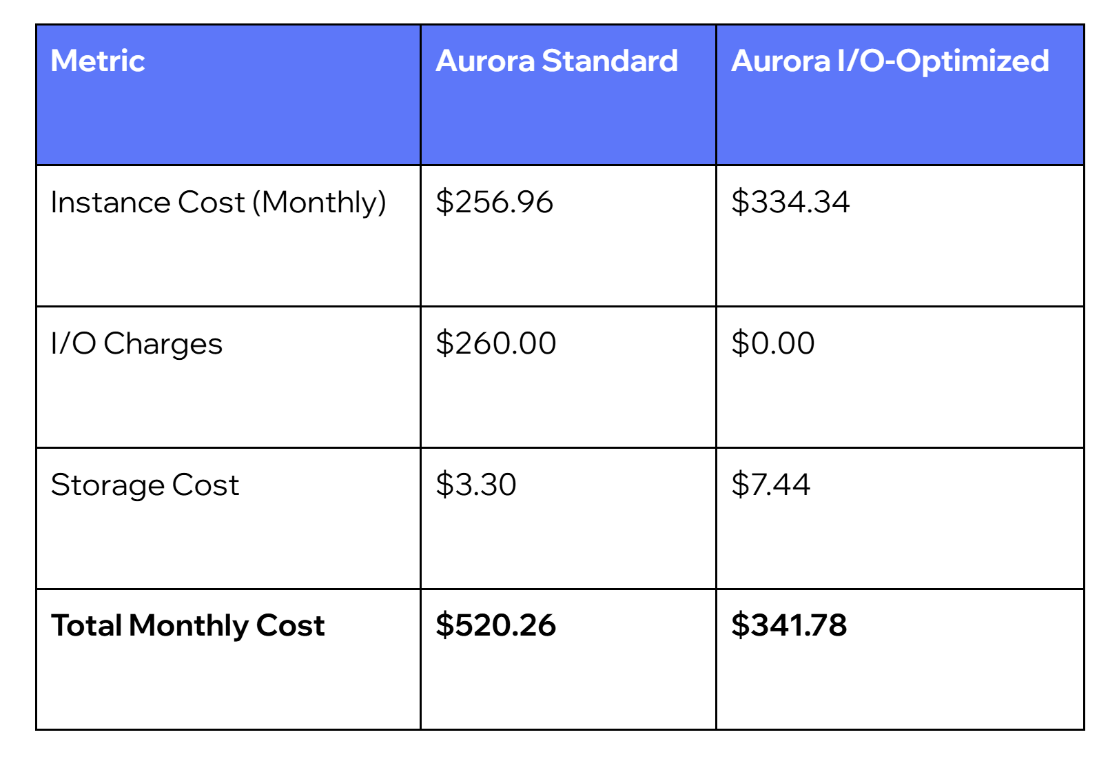 In that example, the Aurora I/O Optimized configuration is not optimal. $30 om monthly savings can be easily achieved by changing the payment configuration.